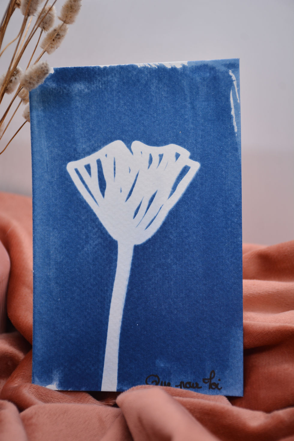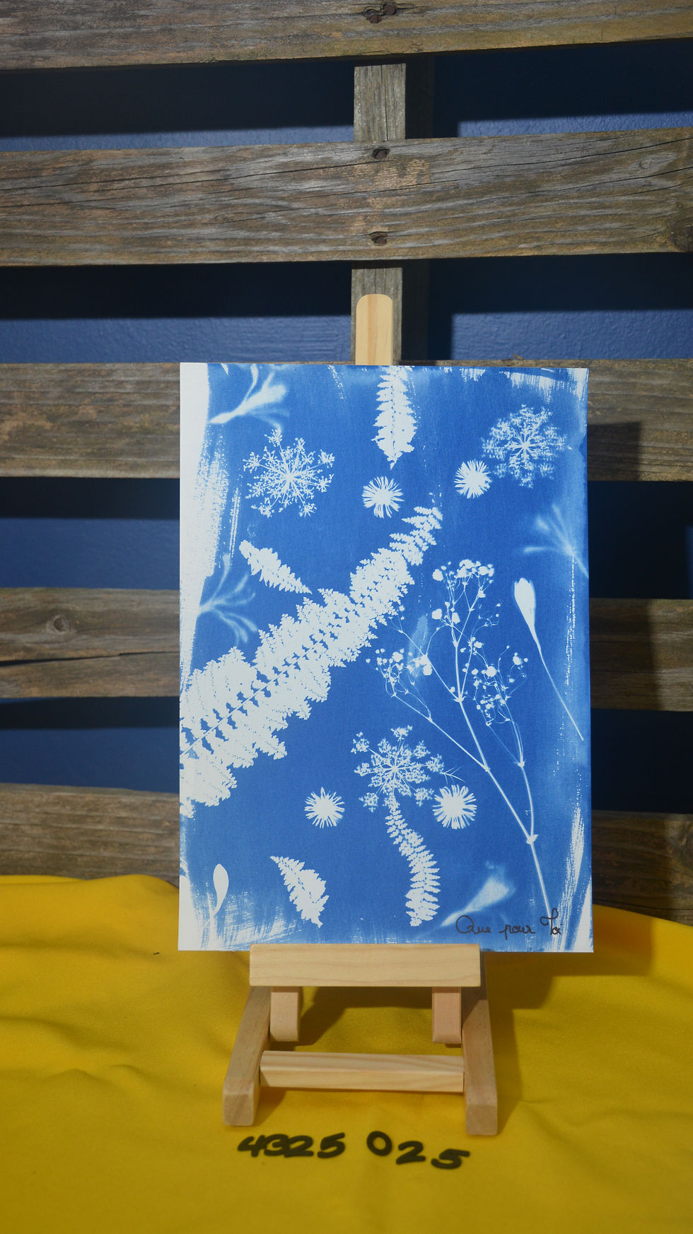 Chaque cyanotype naît d’un instant fragile — une empreinte végétale, un souffle de lumière, un geste silencieux.